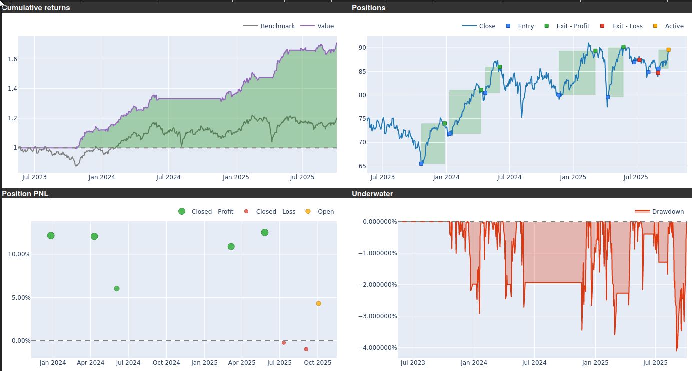 With a 70% profitability over 3 years with ChooseYourStock instead 20% with buy&hold, and a maximum loss of only 4%, the result is an exceptional Calmar ratio above 9!
