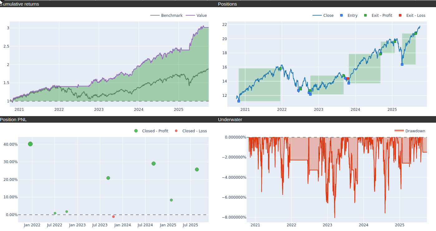 With a maximum drawdown of only 8%, this low-risk strategy achieves a Calmar ratio of around 4.5!